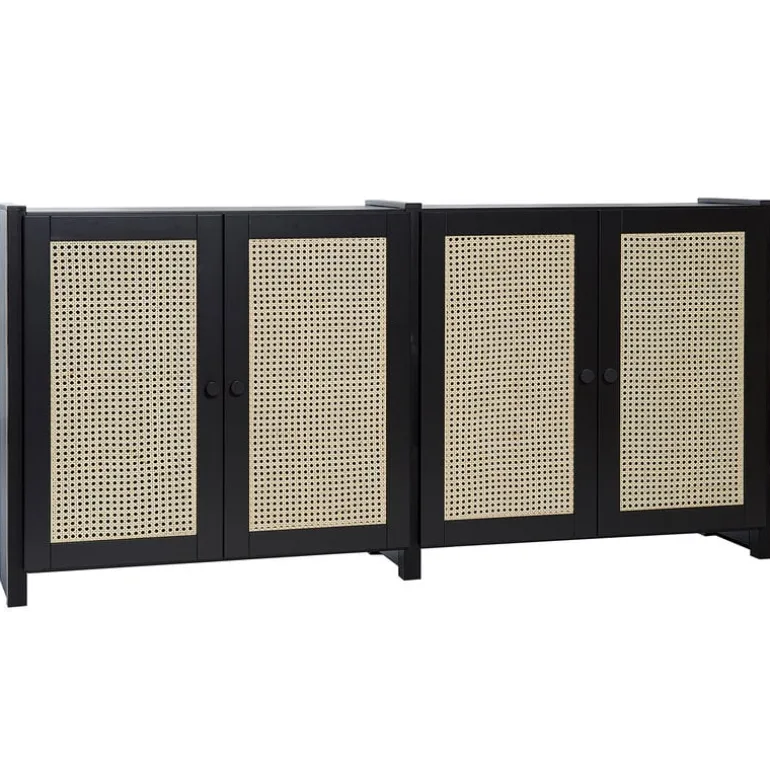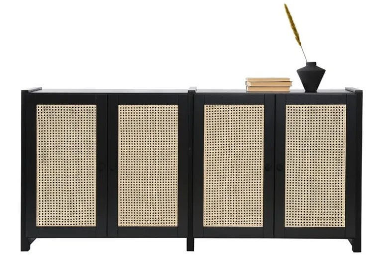 The Lundia Classic sideboard combines a trendy yet timeless rattan weave with the quality of Finnish woodworking. The cabinet doors are adorned with light, natural rattan weave, behind which is a solid wood shelf. The doors are perfected with matt-black metal handles and soft-close hinges.