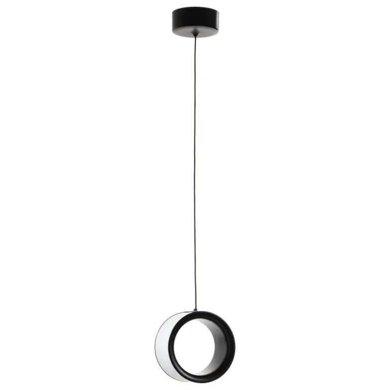To further highlight the unusual design – as if to mark the boundaries of the void – the designers have decided to wrap the lamp’s LED light source over the outside of the circle instead of placing it inside the perimeter, as you usually would expect. This complex engineering decision creates a powerful graphic image that makes one think of a black hole or perhaps a lunar eclipse, especially from a certain angle when only a crescent of the light is visible.