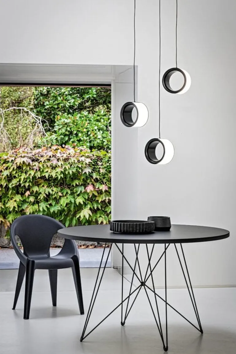 The Lost pendant light by Magis boasts a simple yet striking design characterized by a surprising protagonist: the empty space. Created by BrogliatoTraverso, the lamp presents a re-imagination of the conventional lampshade, in which the entire structure is eliminated, leaving behind only the perimeter and creating a fascinating, thought-provoking central void.