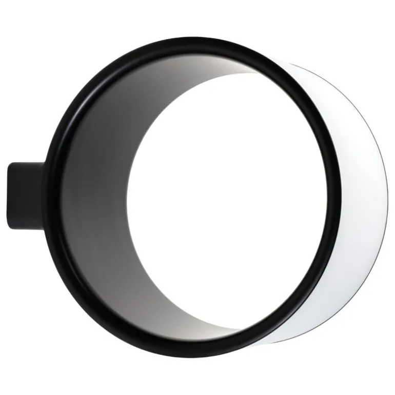 To further highlight the unusual design – as if to mark the boundaries of the void – the designers have decided to wrap the lamp’s LED light source over the outside of the circle instead of placing it inside the perimeter, as you usually would expect. This complex engineering decision creates a powerful graphic image that makes one think of a black hole or perhaps a lunar eclipse, especially from a certain angle when only a crescent of the light is visible.