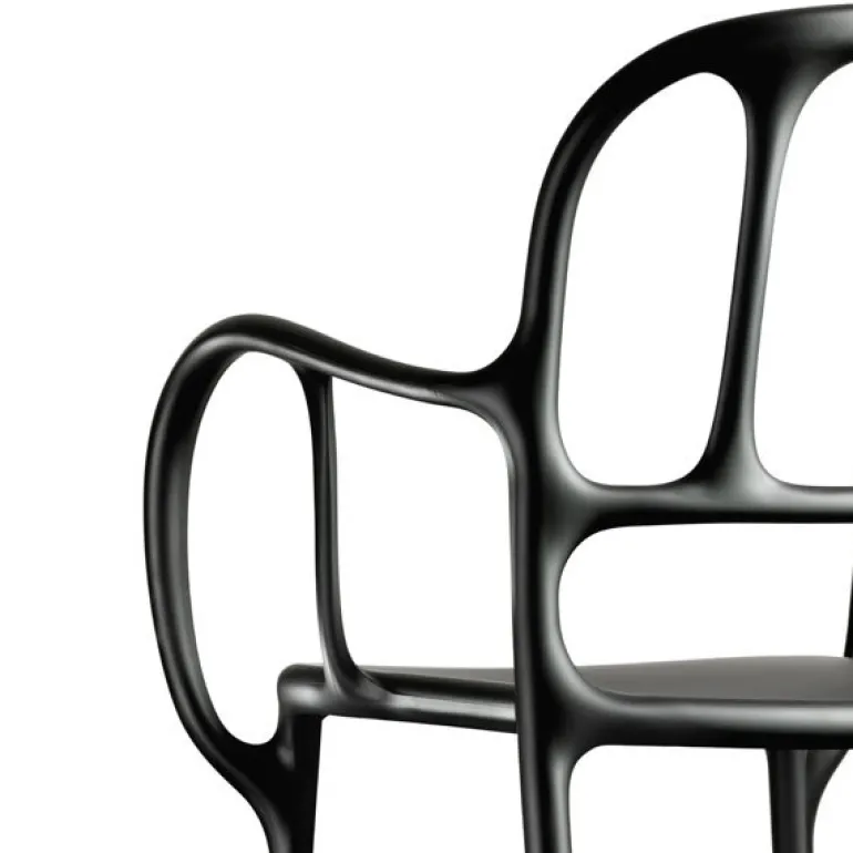 The Milà chair from Magis is designer Jaime Hayòn’s first plastic product. With a gas-assisted injection molding technique Hayón was able to create a plastic chair that wouldn’t have been possible to achieve with traditional materials such as wood. Elegant Milà stands out with its organic and dynamic shapes, characteristic to Catalan modernism. The lightweight chair features slender legs and ornamental back and armrests that look lovely both indoors and outdoors.