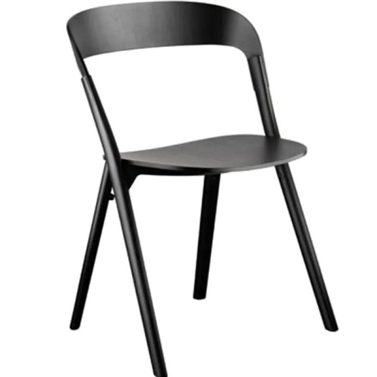 The minimal Pila chair by Magis came to being when Ronan and Erwan Bouroullec set out to create a chair with the least amount of materials and hardware. The delicate legs are solid ash, and the seat and backrest are made of thin ash plywood. The slanted line of the front legs continues all the way to the beautiful backrest that curves around the sitter like a wide ribbon. Made of die-cast aluminum, the structure joining the legs to the seat is nearly invisible. Pila features an airy, stackable design that will stand the test of time and pairs well with any contemporary table.
