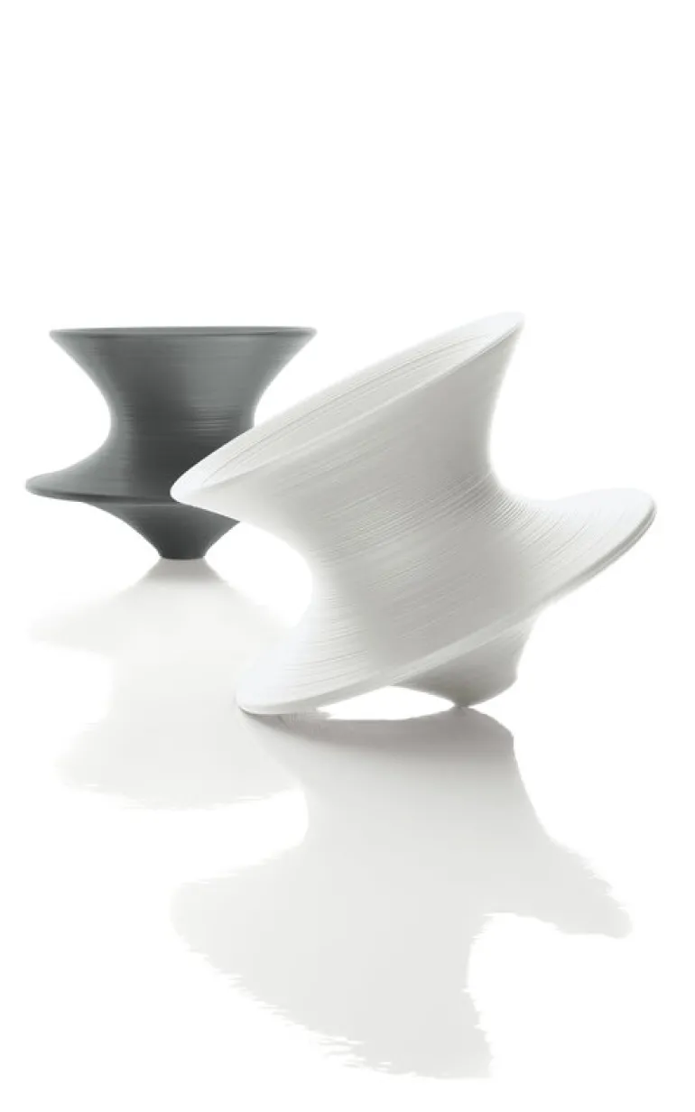 The Spun by Magis is a rotating chair designed by Thomas Heatherwick in 2010. This sculptural piece of design invites you to try out its usability – in the chair you can swing from side to side or even spin around. In addition to its fun and interesting appearance, the Spun is a comfortable and functional seat that is also well suited for outdoor use. Made of polyethylene, the Spun is available in several different matte shades.