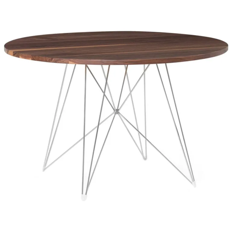 Magis’ XZ3 table has a light and sculptural appearance created by the three-dimensional shapes of its slender, coated steel rod structure. Thanks to the unique steel frame, the substructure of the XZ3 table is at least an equally important element as the walnut tabletop itself.