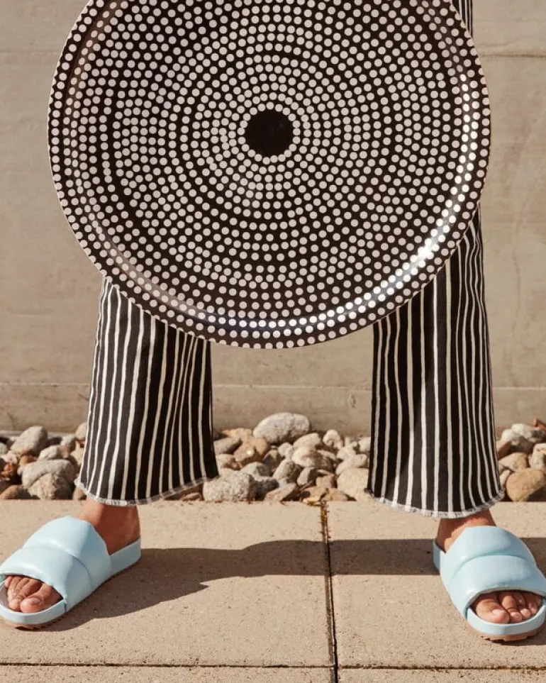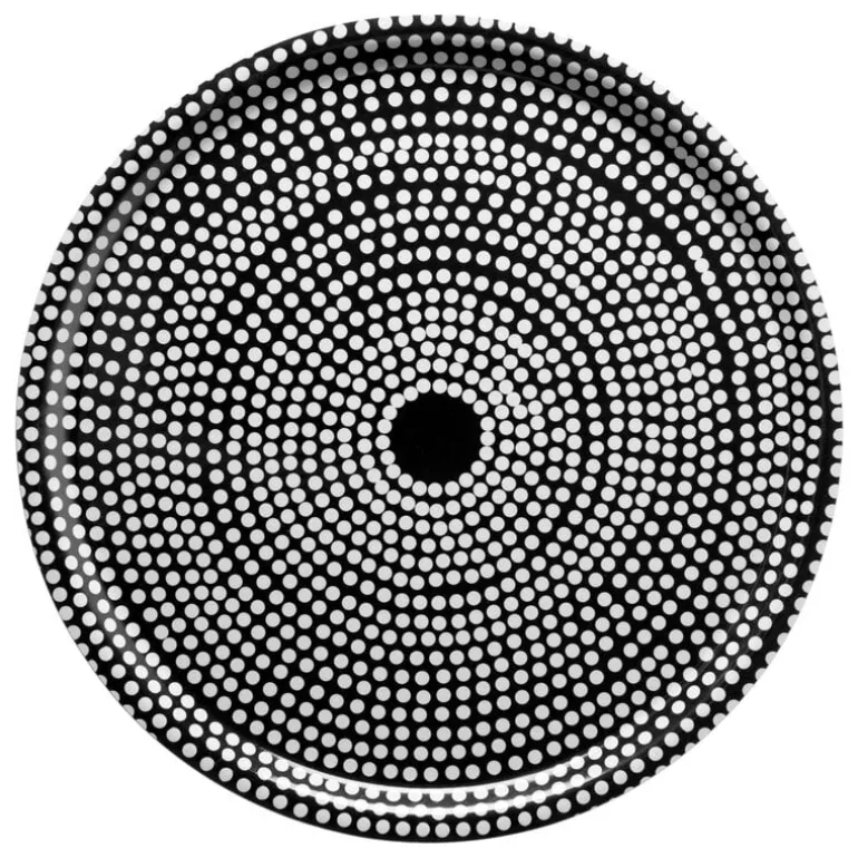 Marimekko’s Fokus tray is adorned with a bold geometric circle pattern designed by Anna Danielsson in 2001. The large, round tray is made of laminated, waterproof birch plywood. On the reverse side, the tray showcases its natural wood finish. The versatile and functional Fokus tray serves as both a reliable kitchen accessory and a stylish interior detail.