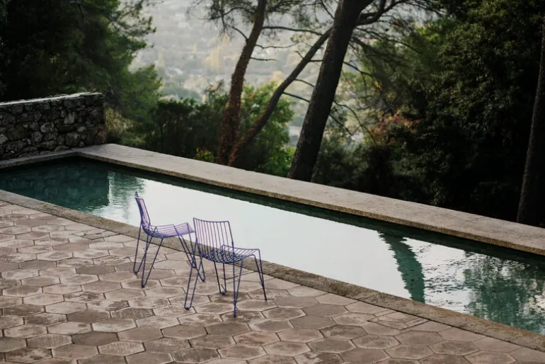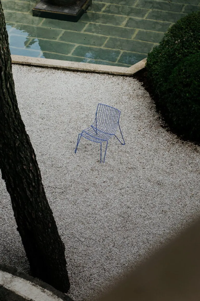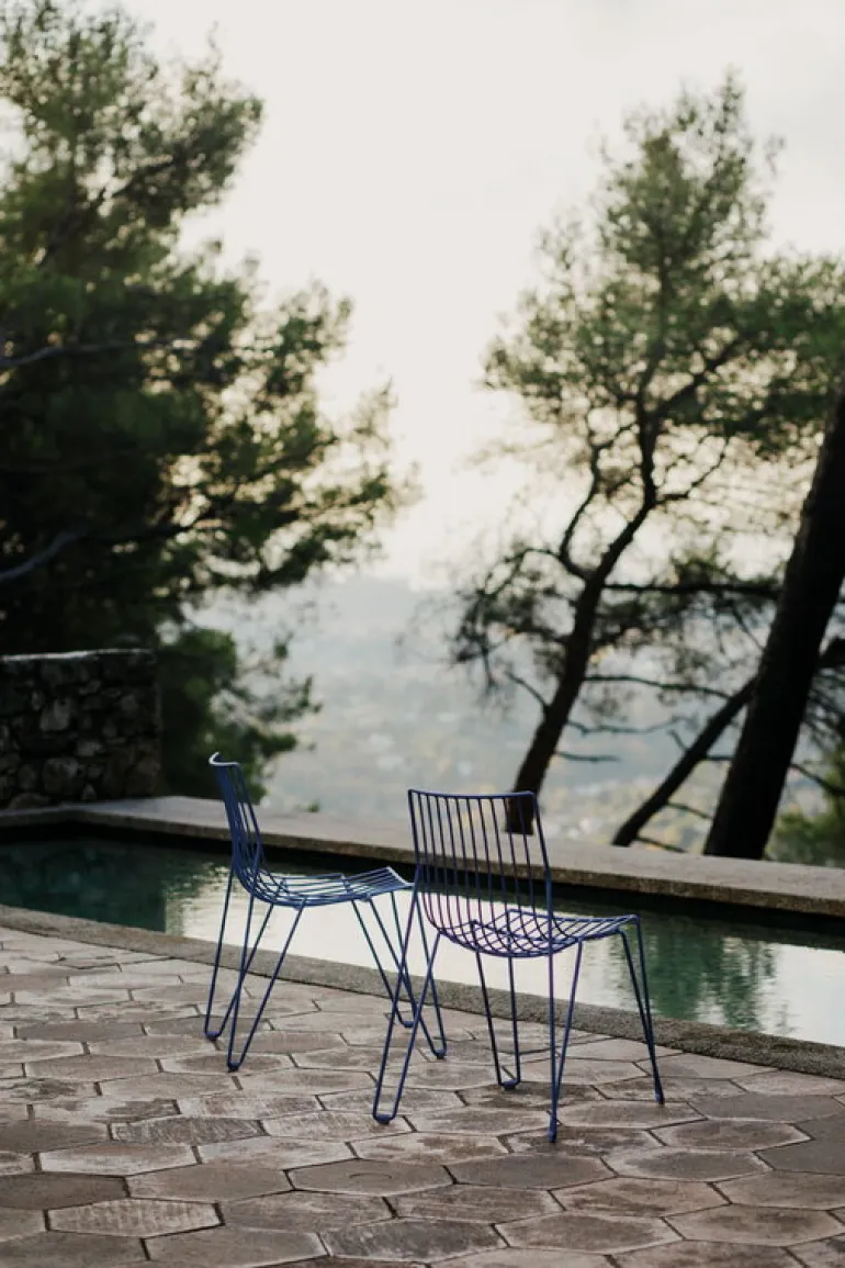 The Tio chair by Massproductions is an elegant seat suitable for both indoor and outdoor use. Designed by Chris Martin, the Tio chair is made entirely of galvanized steel wire with a refined powder coating, giving the chair its distinctive light and airy look. The sophisticated Tio collection is a timelessly beautiful choice for both the dining area and the terrace, indoors and out.