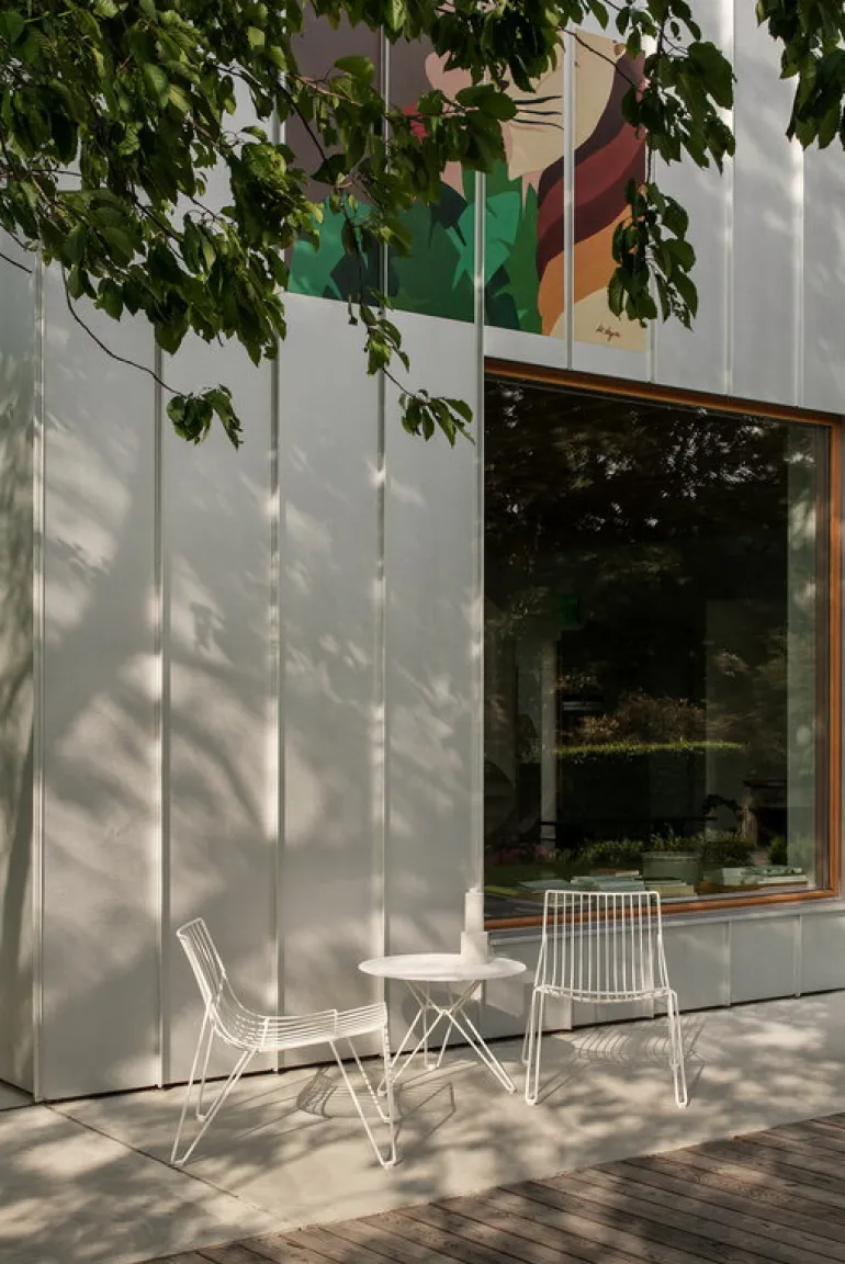 The Tio easy chair by Massproductions is an elegant seat suitable for both indoor and outdoor use. Designed by Chris Martin, the Tio lounge chair is made entirely of galvanized steel wire with a refined powder coating, giving the chair its distinctive light and airy look. The sophisticated Tio collection is a timelessly beautiful choice for both the living room and the terrace, indoors and out.