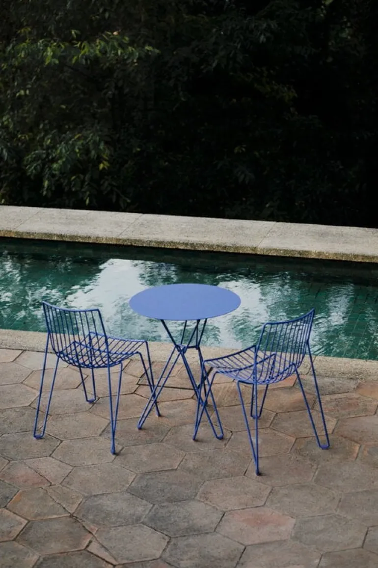 Tio by Massproductions is an elegant table suitable for both indoor and outdoor use. Gracefully supporting the round metal tabletop, Tio’s frame is made from galvanized steel wire with a refined powder coating, giving the table its distinctive light and airy look. Designed by Chris Martin, the sophisticated Tio collection is a timelessly beautiful choice for both a street-side cafe and a private balcony, indoors and out.