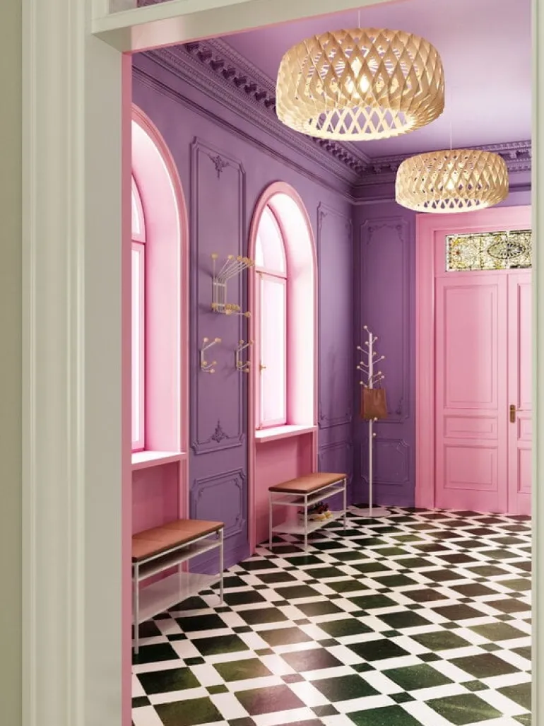 The wall-mounted coat rack Bill, designed by Louise Hederström for the Swedish Maze, is part of a collection of modern storage furniture characterized by a minimalist appearance that easily suits any hallway. The geometrical design of the Bill coat rack is a combination of a recycled metal frame and playful hooks perfected with round, wooden balls. Complement the storage style with other products from Maze’s Bill collection.