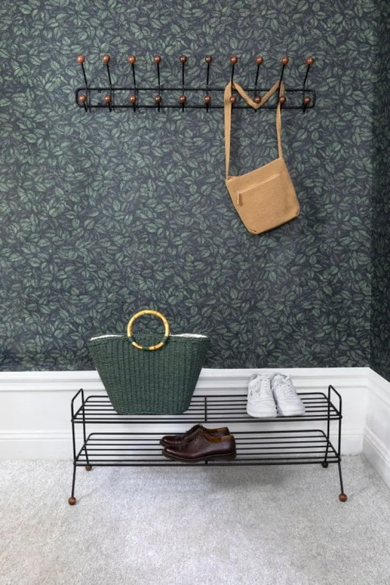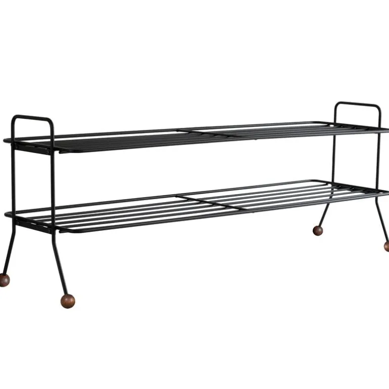 The Bill shoe shelf, designed by Louise Hederström for the Swedish Maze, is part of a collection of modern storage furniture characterized by a minimalist appearance that easily suits any hallway. The geometrical design of the Bill shoe rack is a combination of a recycled metal frame and playful hooks perfected with round, wooden balls. Complement the storage style with other products from Maze’s Bill collection.
