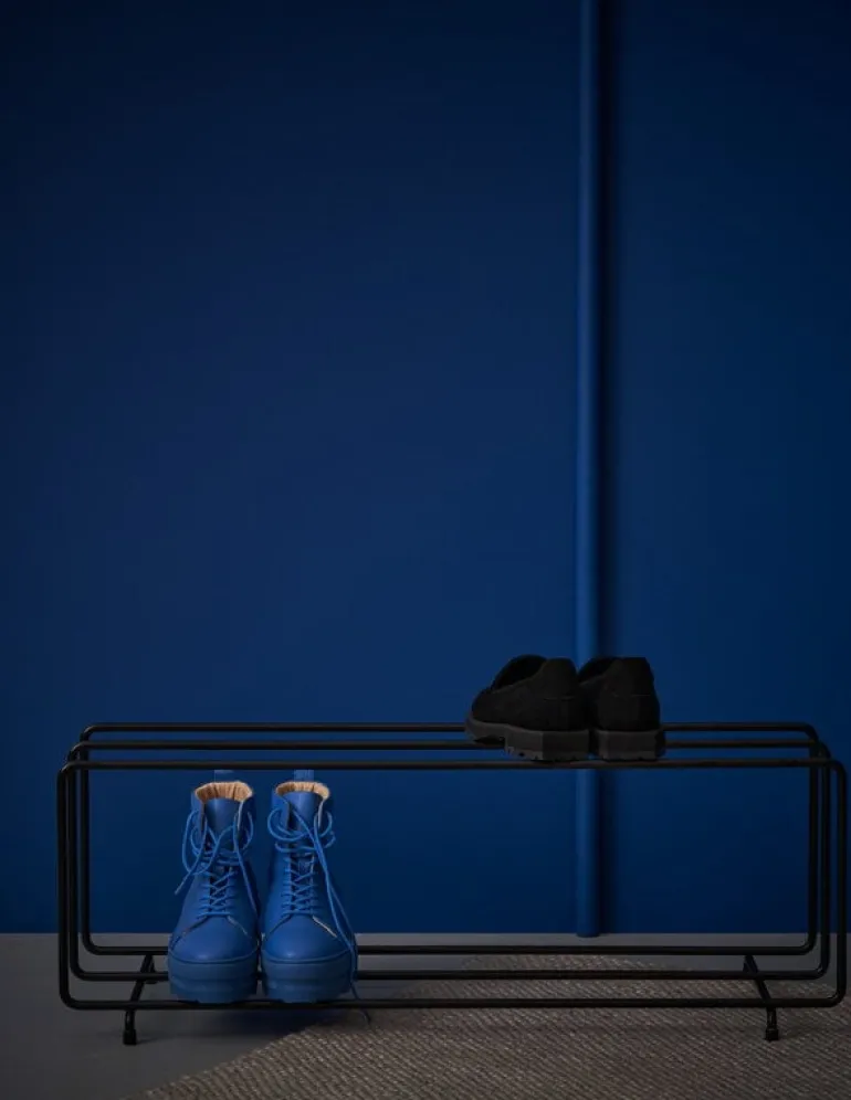 The multifunctional Mixrack, designed by Tapio Anttila for Maze, is a lightweight shoe rack that stores your shoes with style. The rack is made from painted steel and features a minimalist design that will suit well small spaces as well as any decor. You can also place several Mixracks in a row or pair them with other members of the Mixrack collection.