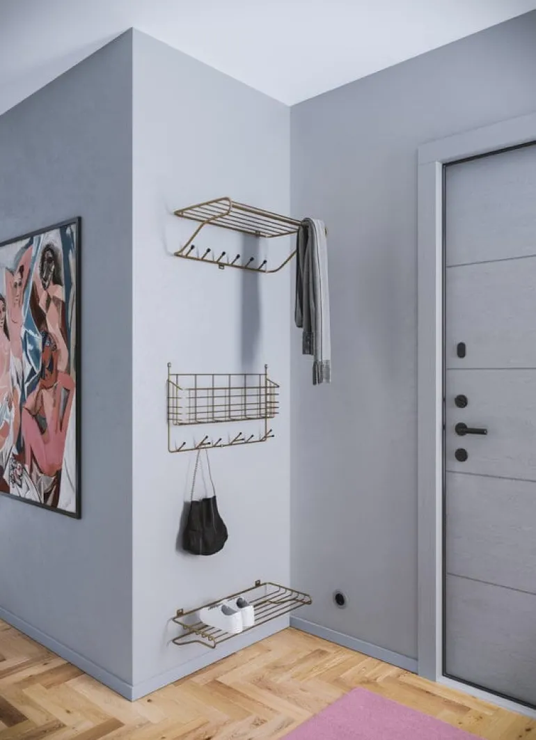 Shoe Shelf by the Swedish Maze is a compact wall-mounted shoe rack that is perfect for small hallways and other dressing areas. Shoe Shelf helps you to store shoes and storage boxes in an airy and elegant style, and you can also create a larger storage system by mounting several shelves into a group. Shoe Shelf was designed by Olof Kolte and is made of 100% recycled metal.