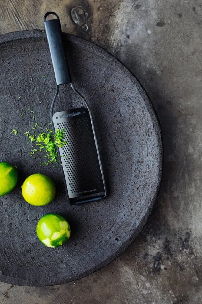 Microplane’s Black Sheep Series Fine grater can be used for hard cheese, citrus zest, chili, cinnamon, ginger, garlic and onion into a fine powder or paste. The elegant, entirely black grater is made of stainless steel with a PVD coating for extra scratch resistance, and the non-slip rubber handle ensures a good grip. In 2022, the Black Sheep Series graters won the Red Dot Award.