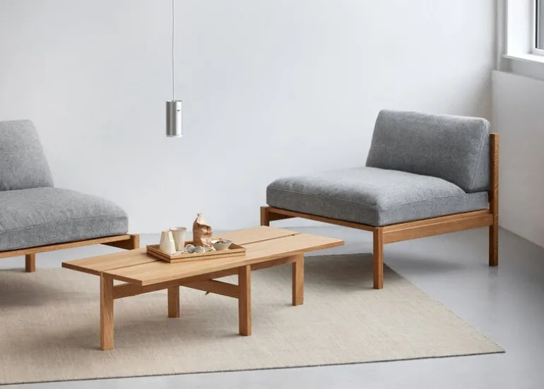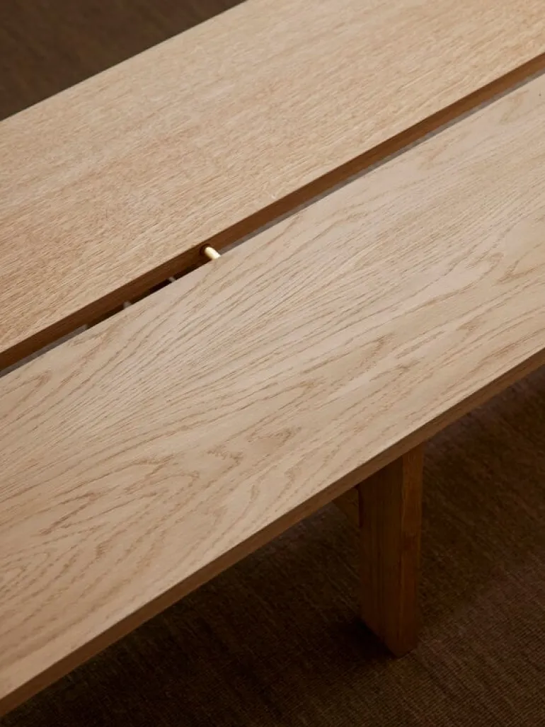 Moebe’s Rectangular coffee table is more than just a beautiful piece of oak furniture, as its intrigue is enhanced further by a distinctive structure. Beneath the minimalist tabletop, the cross-shaped leg frame’s parts meet perfectly in the middle, brought together by a brass screwing mechanism. The one-of-a-kind design gives the corners space to breathe, affording the low-profile Rectangular table an airy and light feel – and potentially even the title of the most captivating item in the living room.