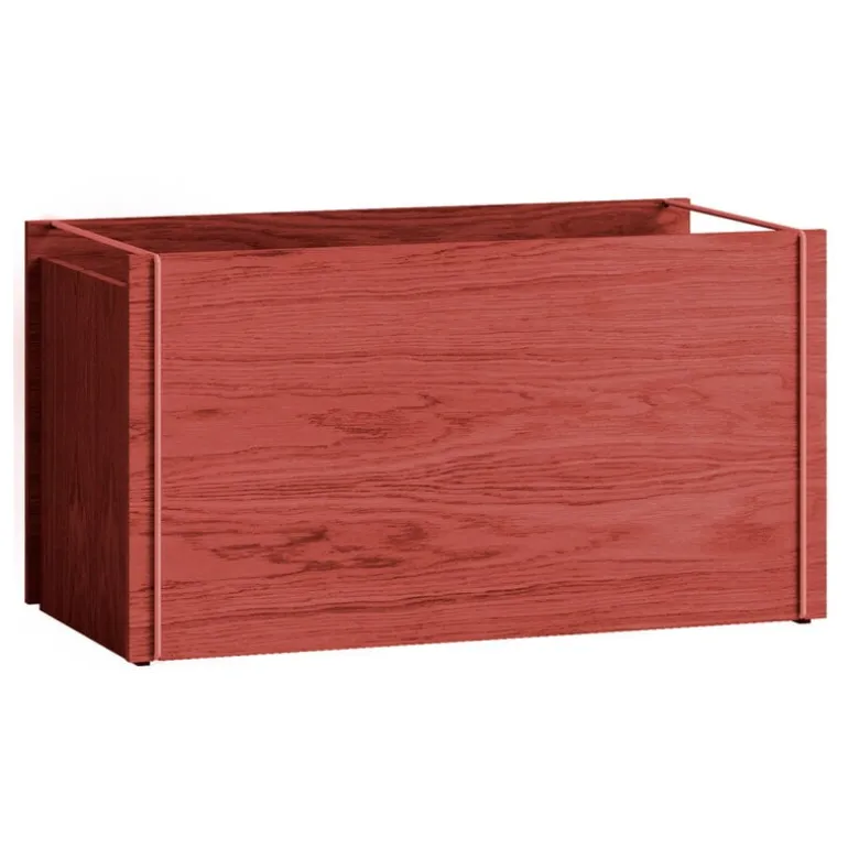 Moebe’s storage box provides a minimalist, elegant setting for storing magazines, toys, cushions or folders. The box is stackable: you can stack up to three boxes to create a space-saving storage system, the parts of which can be easily lifted off, if necessary, by grabbing the metal handles. The wooden storage box can also be turned on its side or upright to make a nightstand or small side table out of it.
