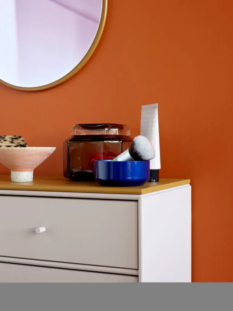 The Montana Mini module, consisting of three drawers, is a simple yet extremely multifunctional storage module that can be mounted on the wall or placed on the floor, either individually or in groups. The module is mounted on the wall by hanging it on the included suspension rail with small spacers – this way, you can easily rearrange the modules without any tools and adjust them by rotating the spacers. All corners of the module have pre-drilled holes, allowing you to mount it any way you like. Included are also anti-slip patches for stacking the modules on top of each other.
