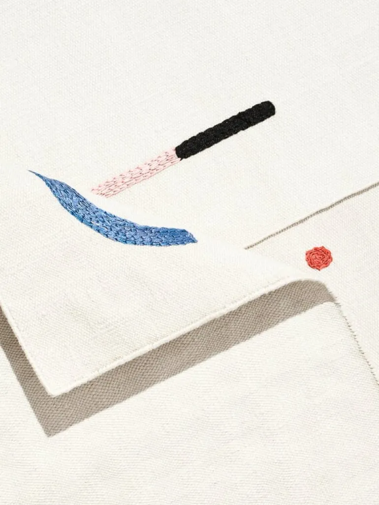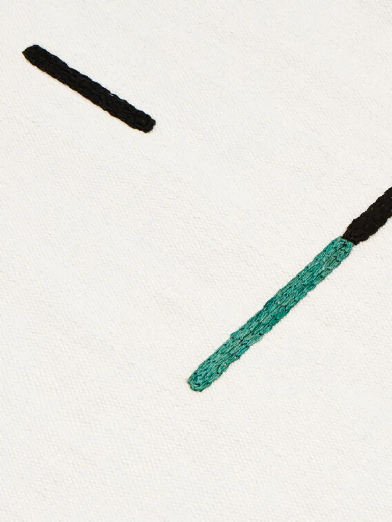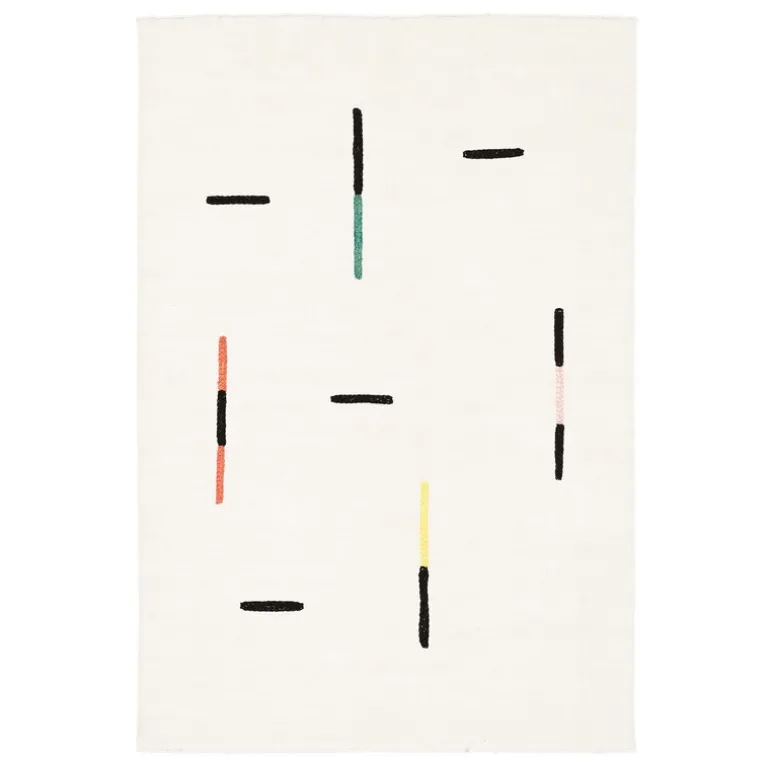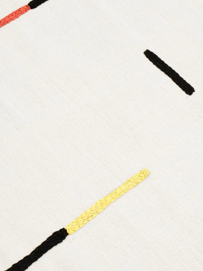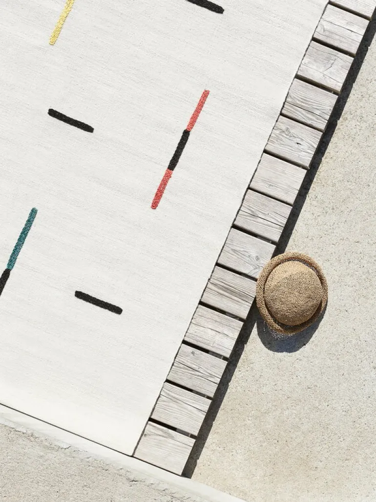The Näkymä I rug, designed by Tomi Leppänen for MUM’s, is adorned with an abstract pattern based on typographical elements. Part of Leppänen’s Typewriter collection, the rug is inspired by Bauhaus and specifically the work of textile designer Anni Albers, who experimented in the 1930s with using her typewriter as a tool for making patterns. The multicolour pattern of Näkymä (Finnish for “view”) is also created using the full stops and dashes of a typewriter.
