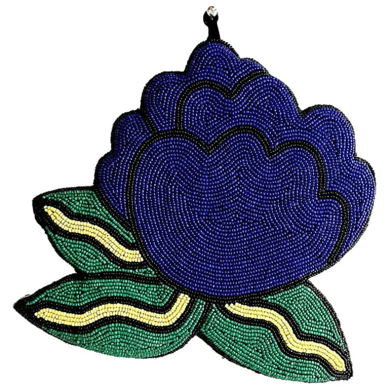 Mum’s Rose wall art brings joy, energy and the beauty of nature straight into your home décor. Designed by Ricardo Cavolo, the lively piece showcases a flowing flower shape, crafted with colorful glass beads intricately embroidered onto fabric. The handcrafted artwork complements both the serene ambience of the bedroom and the playful spirit of the nursery. The Rose wall decoration also pairs beautifully with other animal characters and nature-inspired pieces from Mum’s collection!