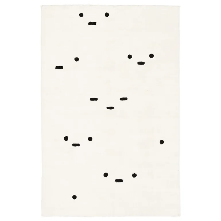 The Seurapiiri II rug, designed by Tomi Leppänen for MUM’s, is adorned with an abstract pattern based on typographical elements. Part of Leppänen’s Typewriter collection, the rug is inspired by Bauhaus and specifically the work of textile designer Anni Albers, who experimented in the 1930s with using her typewriter as a tool for making patterns. The black-and-white pattern of Seurapiiri (Finnish for “society” or “circle”) is also created using the full stops and dashes of a typewriter.