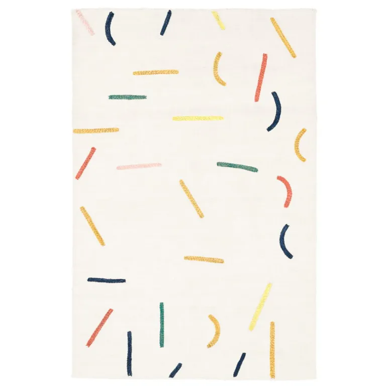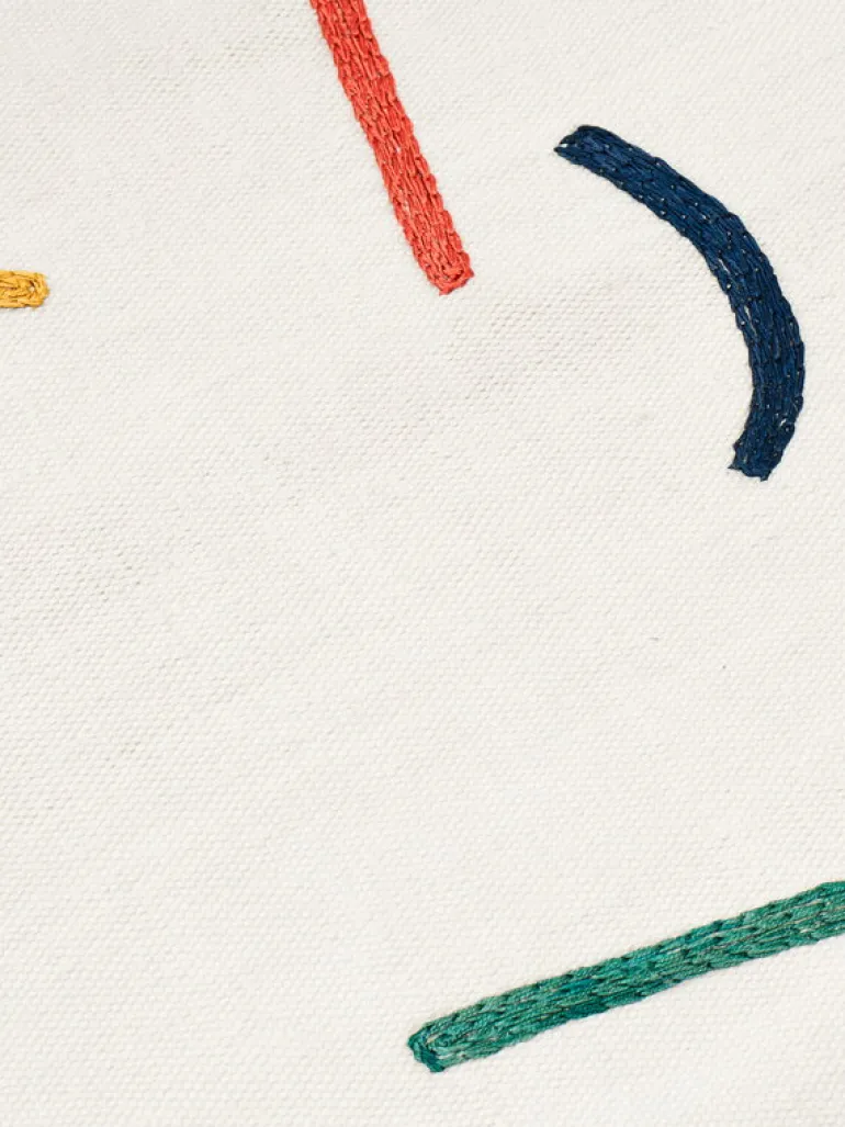 The Visionääri rug, designed by Tomi Leppänen for MUM’s, is adorned with an abstract pattern based on typographical elements. Part of Leppänen’s Typewriter collection, the rug is inspired by Bauhaus and specifically the work of textile designer Anni Albers, who experimented in the 1930s with using her typewriter as a tool for making patterns. The colorful pattern of Visionääri (Finnish for “visionary”) is also created using the dashes and parentheses of a typewriter.