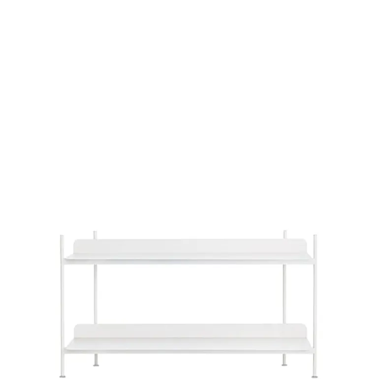 Compile, designed by Cecilie Manz, is a minimalist and functional shelving system that consists of simple laser-cut steel shelves and dividing tubes. The visually appealing design features a matt, powder-coated finish and round corners that give it a light and airy appearance. Sturdy Compile serves as a room divider, individual shelf module as well as a large storage system both in domestic and public environments.