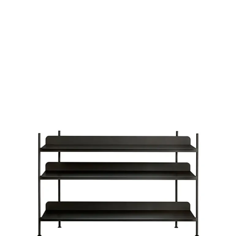 Compile, designed by Cecilie Manz, is a minimalist and functional shelving system that consists of simple laser-cut steel shelves and dividing tubes. The visually appealing design features a matt, powder-coated finish and round corners that give it a light and airy appearance. Sturdy Compile serves as a room divider, individual shelf module as well as a large storage system both in domestic and public environments.