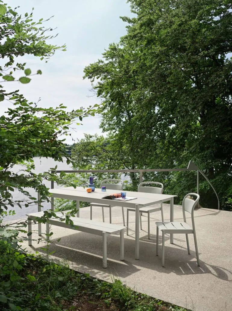Muuto’s Linear Steel bench is characterized by a fine balance between straight lines and rounded legs along with folded edges. The seat has been slightly tilted towards the middle for maximum comfort and easy removal of water. Designed by Thomas Bentzen, the Linear Steel outdoor collection is made of robust, weatherproof and easily cleanable materials: galvanized and Aluzinc-treated steel. The refined shapes and matte tones of the Linear Steel collection are perfect for domestic and public terraces alike, and their visually clean expression will stay fresh year after year.