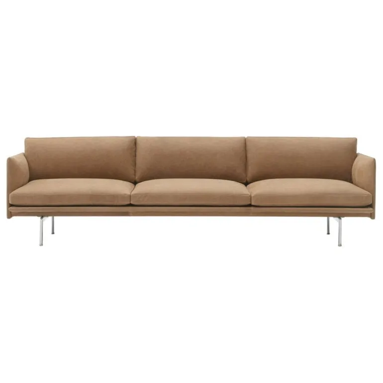 Muuto’s Outline 3 1/2 -seater sofa is a striking mix of great comfort, clean lines and elegance. Torbjørn Anderssen & Espen Voll wanted to create a sofa with inspiring qualities from modernistic architecture. The way elements juxtapose in the sofa is borrowed from the structure of buildings, and the overlapping plains, along with the slender legs, give Outline a light and airy silhouette. The overall impression is calm and serene. The Outline collection consists of many sizes and types of sofas with a high-quality upholstery in either fabric or leather.