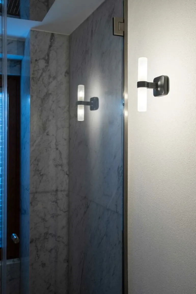 Nemo Lighting’s Crown Applique wall light, designed by the design team of Marcus Jehs and Jurgen Laub, was originally known as the Crown chandelier, which was inspired by the shape of a snowflake. Now the original, strikingly beautiful pendant has been transformed into a wall-mounted lamp that is ideal for bedrooms, living rooms or hallways. The Crown wall lamp consists of a sandblasted opal glass shade and a matt black wall bracket that gives the delicate shade rough and bold contrast.