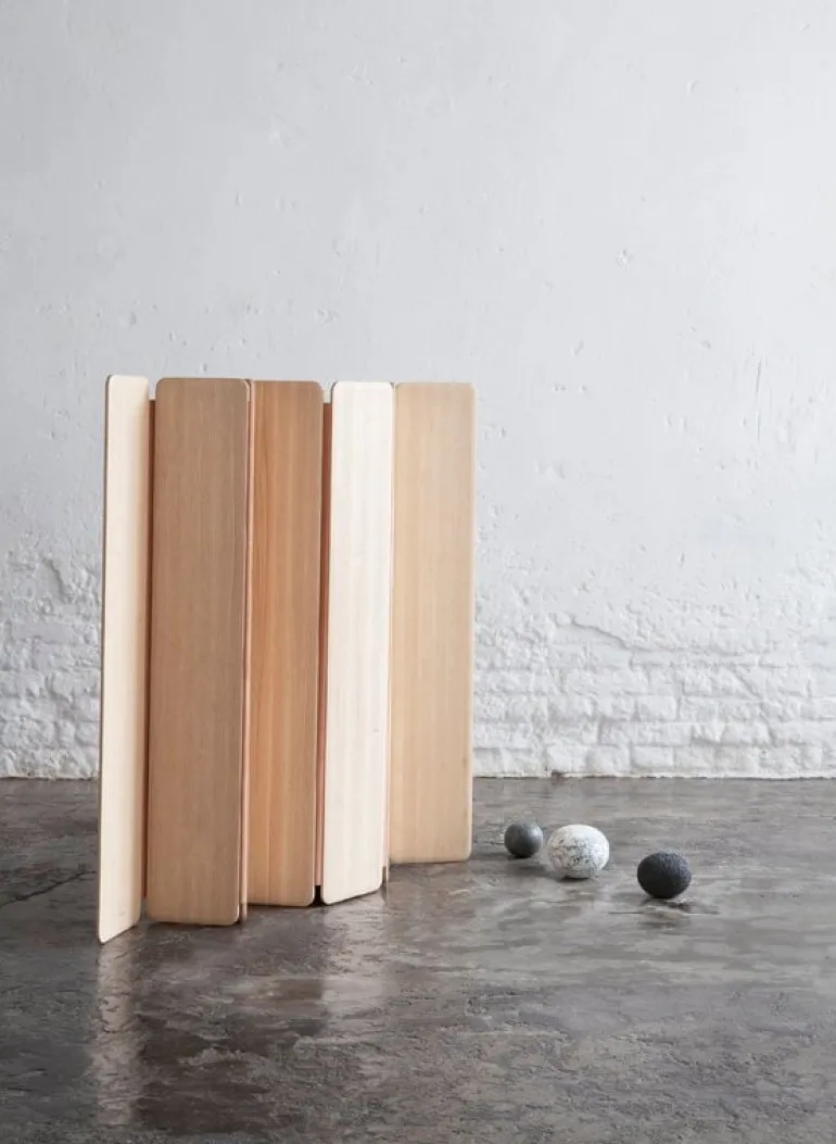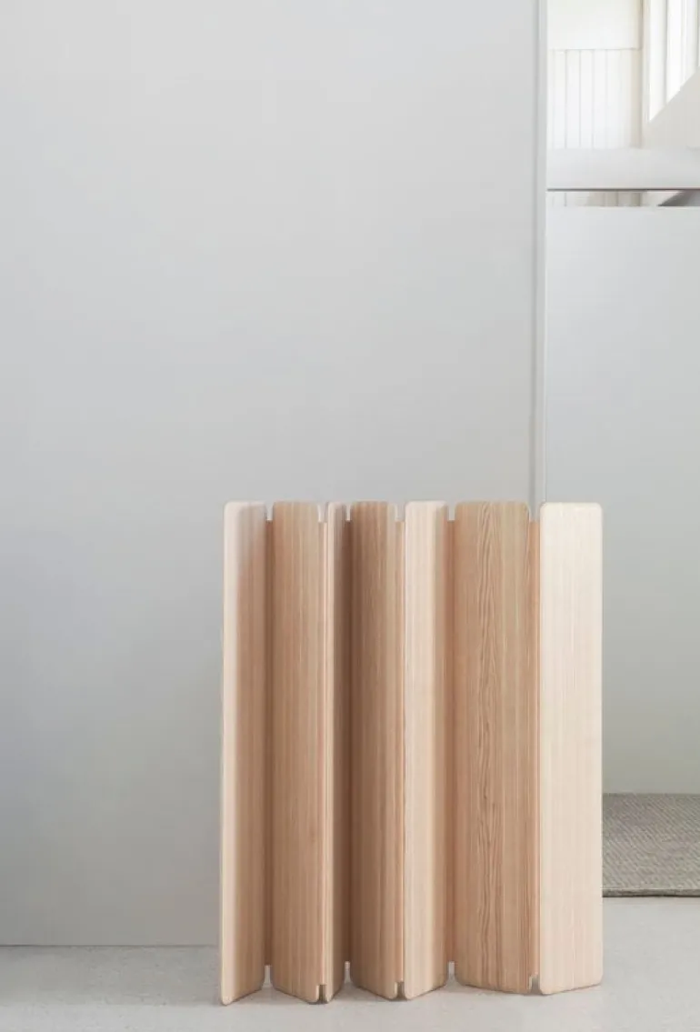 The Separat room divider by Nikari adds a sense of tranquility and a beautiful touch of ash wood to the room, helping you use the space in a more efficient way. Designed by Cecilie Manz in 2018, Separat is made of thin ash panels patterned by the natural grain of the wood. Thanks to the naturally tanned leather hinges between the panels, Separat can be shaped and folded to fit various different spaces. The portable room divider is perfect in a dressing area, office use or nursery, and its attractive appearance adds organic calmness to larger spaces as well.