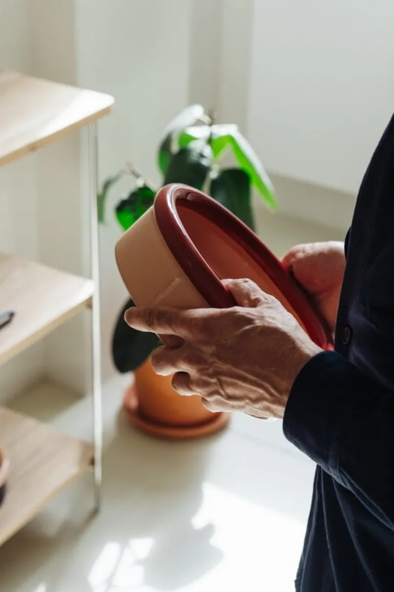 Nine’s Rod bowl pays homage to traditional pottery and ceramic techniques. Designed by Julien Renault, the bowl gets its unique character from the combination of two harmonious tones, offering a simple yet striking vessel for storing fruits or tiny treasures at home. The hand-crafted and glazed pots, vases, and bowls of the Rod collection stand out as individual decorative pieces but also blend beautifully when paired together.