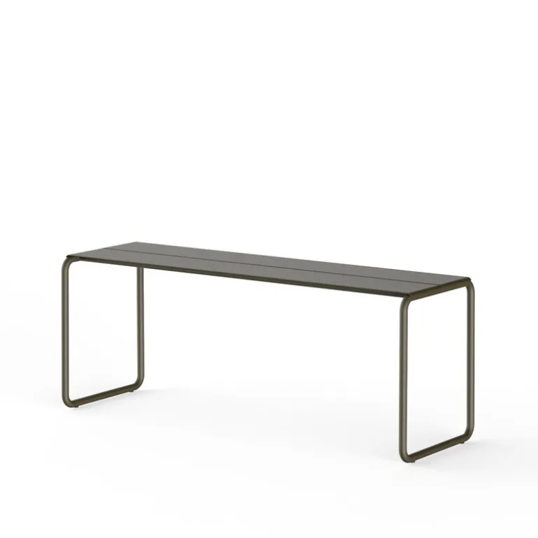 Nine’s Sine bench is an elegant stainless steel garden bench that stands out with its tubular, rectangular frame, giving it a sleek appearance. The seat of the bench is crafted from thin metal sheets with gaps that allow for quick drying after a downpour.