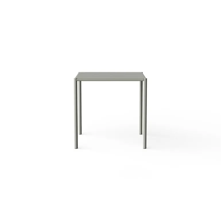 Nine’s Sine dining table is an elegant stainless steel patio table that stands out with its tubular legs, giving it a sleek appearance and robust structure. The small, square-shaped tabletop is crafted from thin metal sheets with gaps that allow for quick drying after a downpour.
