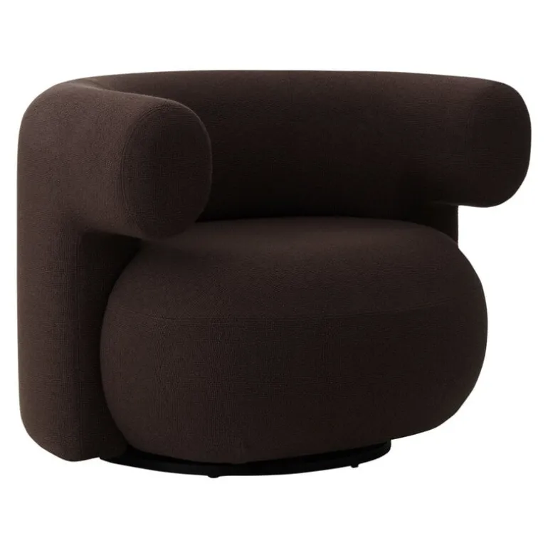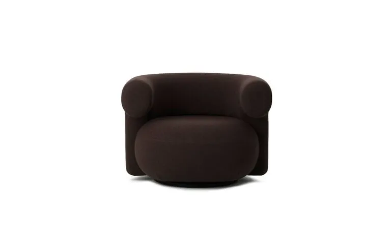 Normann Copenhagen’s Burra lounge chair adds delightful roundness and enveloping comfort to any space where relaxation is key. This sculptural lounge chair brings together a round seat and curved armrests, cradling its occupant in a gentle embrace. Upholstered in a wool fabric, this Burra chair features a swivel mechanism with return, making it easy to rock towards a conversation partner or perhaps a beautiful view.