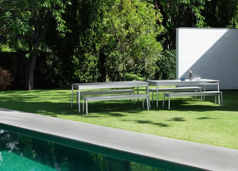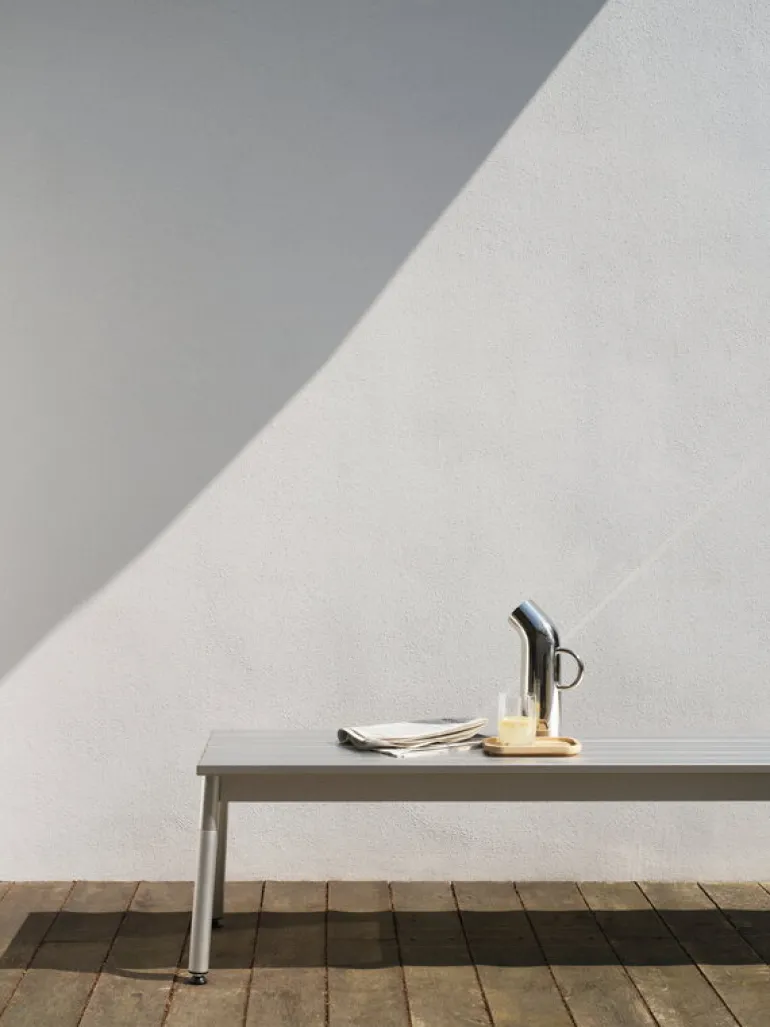 Normann Copenhagen’s Ex bench adds a hint of industrial style to terraces, balconies and gardens. Designed by Simon Legald, the bench is built to handle the challenges of weather with ease. Made from durable anodized aluminum, the Ex bench resists the effects of sun and rain, standing strong season after season. The lightweight frame and minimalist design make the bench just as fitting for indoor use, too, offering versatile seating for any space.