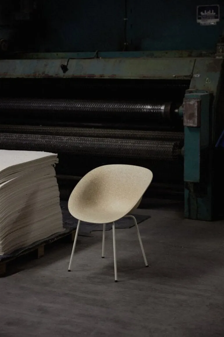 The armchair is part of the Mat collection, designed by Foersom & Hiort-Lorenzon. The name of the series, “Mat”, stands for “material,” reflecting the chair’s construction from a groundbreaking blend of hemp and polyester fibers. This material is the outcome of years of research and development, contributing not only to the chair’s simple appearance but also to its environmental sustainability. The Mat collection is designed for full recyclability, allowing for the disassembly and repurposing of its components into new products.