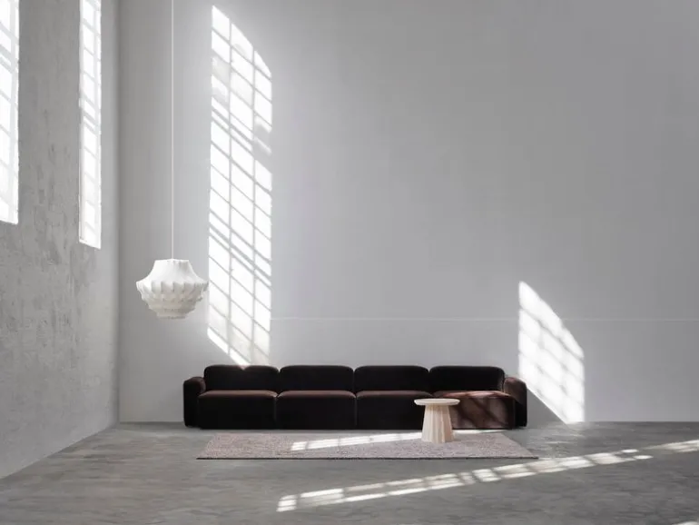 Phantom lamp by Normann Copenhagen is designed by Simon Legald, and the shape of it is reminiscent of a traditional chandelier. The dramatic silhouette of the Phantom lamp is achieved by spraying the steel frame with a flame-retardant resin, like a silkworm forms its cocoon. Light filters through the semi-transparent material softly, creating an atmospheric lighting to your bedroom or living room.