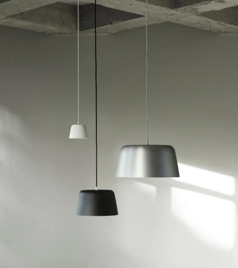 The clean lines and refined esthetics of the Tub lamp make it a timeless choice for a variety of interior styles, and the minimalist pendant light can also be hung in groups of several lamps.