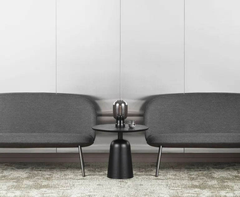 Normann Copenhagen’s Turn is an attractive, multifunctional side table designed by Simon Legald. The name Turn comes from the swivel structure of the table: by turning the tabletop, you can adjust the height of the table between 16.34 in (41,5 cm) and 26.18 x 0 in (66,5 x cm. cm). The lower heights are great when using Turn as a coffee table or bedside table, and when turned higher, it makes an excellent side table in any room. The bell-shaped base is made of steel and the tabletop is ash veneer, and the monochrome coating gives the table a fresh, uniform look.