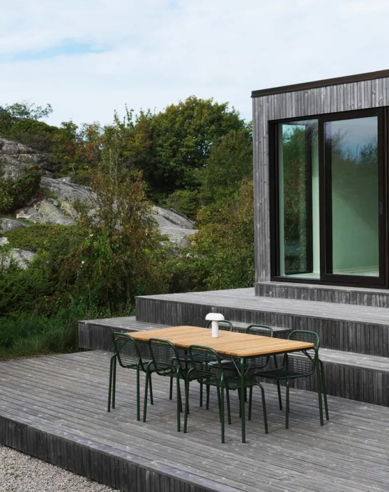Normann Copenhagen’s Vig dining table combines comfort with style, making the table a perfect addition for long patio dinners as well as cheerful garden parties.