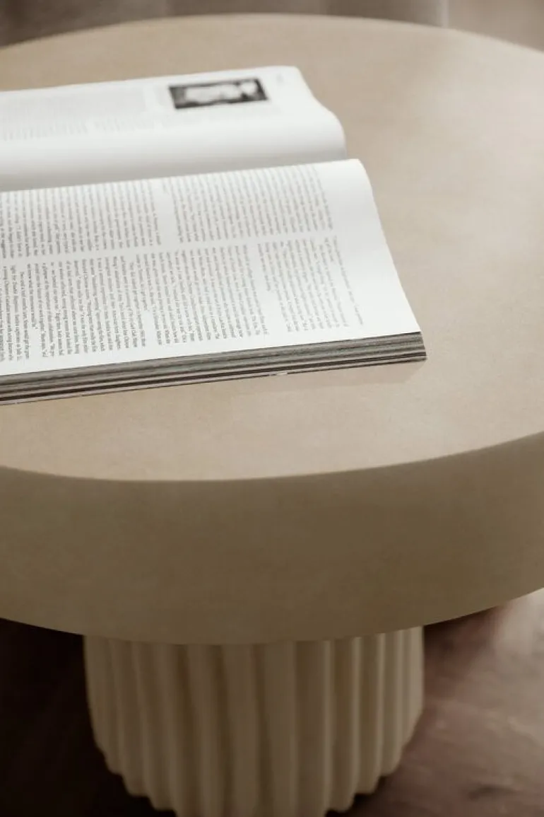 NORR11’s Gear coffee table is a sculptural concrete table with a design inspired by the brutalist architecture of the mid-20th century. The Gear coffee table features a sturdy, round table top supported by three cylindrical legs, all molded in one single piece. Concrete gives the table a lively, tactile texture, which is emphasized by the fluted details of the legs.