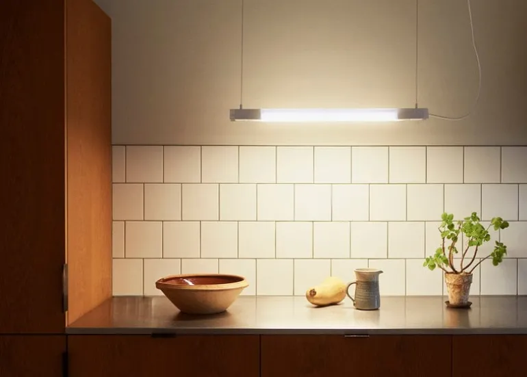 The Radent pendant by NUAD is crafted from perforated steel and aluminum. The understated luminaire offers direct downward light, but due to its construction, light is also filtered upwards through the curved metal mesh. Simple and understated, Radent is ideal for modern office spaces as well as for private homes, placed above dining tables or kitchen islands. The industrial lamp is also easy to envision in hotels, restaurants and bars.