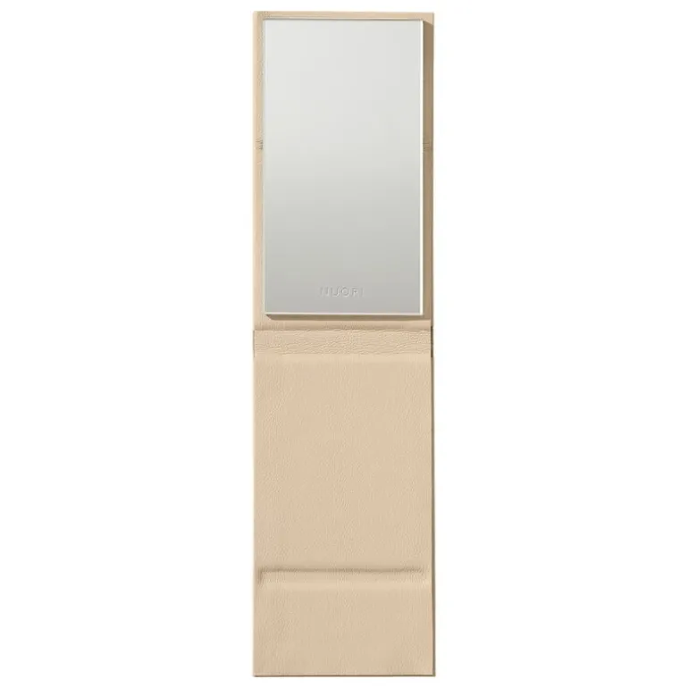 Nuori’s Hideaway mirror is the perfect on-the-go mirror that fits easily into almost any bag. The Hideaway mirror features a rectangular, high-quality glass in a protective case made of vegan leather. The foldable case doubles as a stand when you want to use the Hideaway as a table mirror. The sleek mirror is also easy to slip into a cosmetic bag, for example the Nuori travel case set.