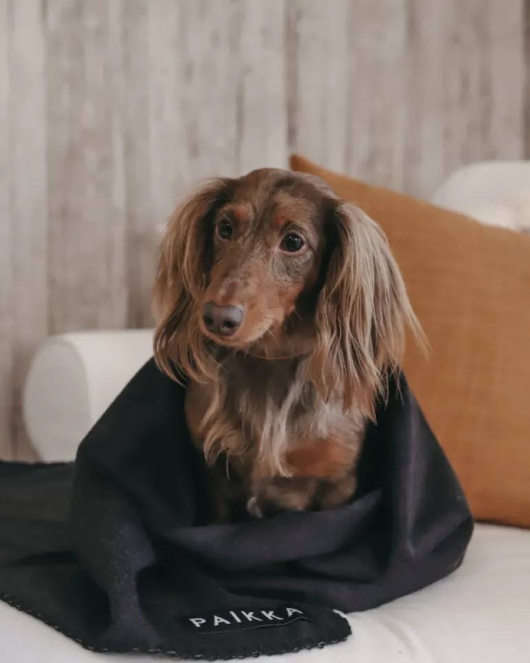 The Recovery blanket from the Finnish brand PAIKKA provides a cozy relaxation spot for your dog or cat, whether at home or on the go – and there might even be enough room for a human companion underneath if needed! Made from a wool blend, the soft and warm dog blanket packs compactly into its own storage bag.