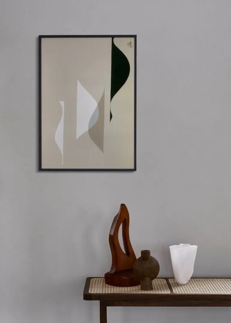 Paper Collective’s Music 01 poster depicts the sounds, rhythm and harmony of music through a group of white, beige, and black forms on a light background. The soothing color palette and abstract shapes also leave room for each one’s own interpretations of what the composition might represent.