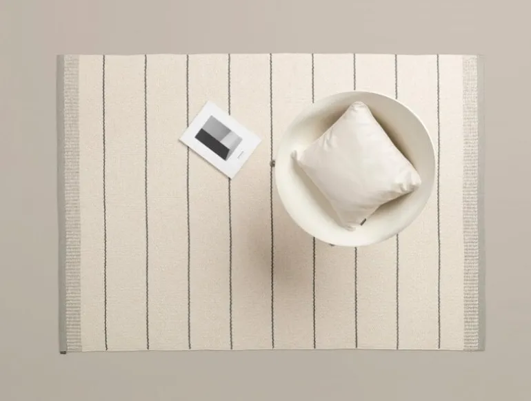 Designed by the Swedish carpet manufacturer Pappelina, Belle rug is characterized by the contrast of light-colored background and thin stripes. The double-folded edges are hemmed with a strong seam.
