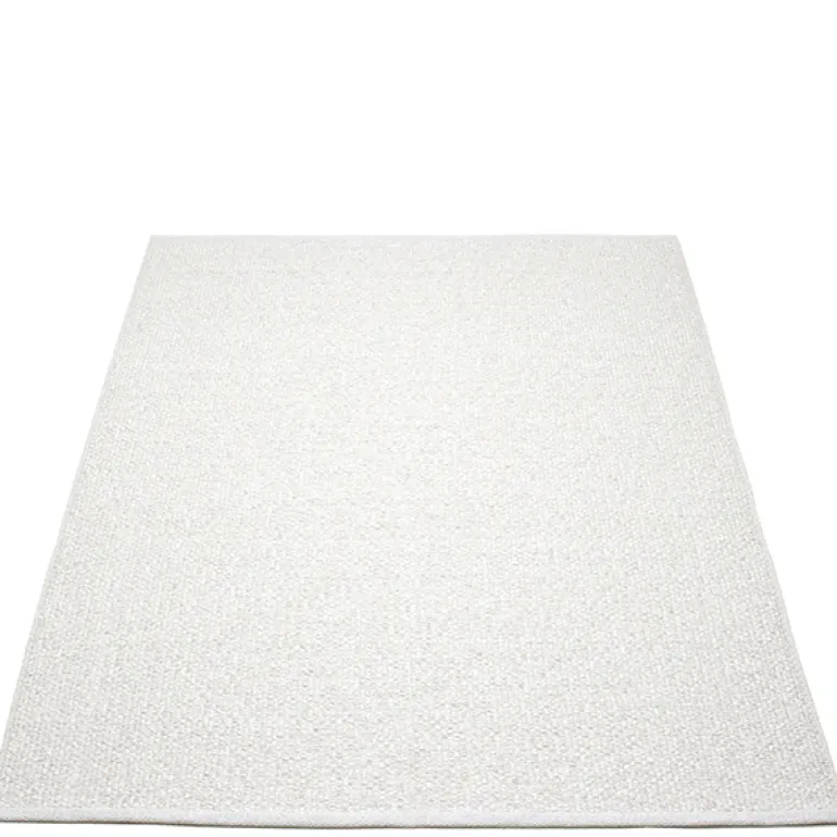 The Svea plastic rugs from Pappelina are woven on a traditional loom in Dalarna, Sweden. Made of phthalate-free PVC ribbon, the rugs are durable and easy to care for, and their two-colored metallic shades are perfect for modern interiors. The Svea rug can easily be put to use as a hallway rug, kitchen area rug or outdoor rug. The Svea rugs come with an embossed logo on both ends.
