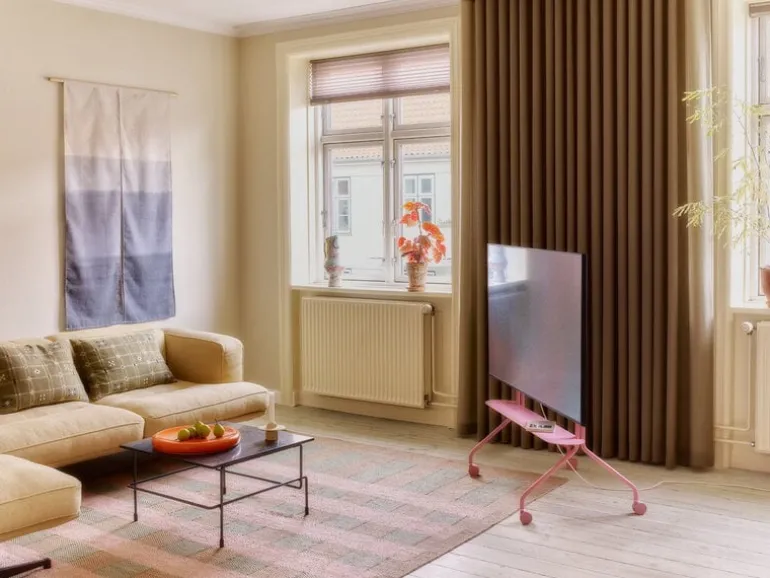 Pedestal’s Moon Rollin’ TV stand provides a sleek and minimalist storage solution for the living room’s centerpiece. Made from powder-coated steel, the TV stand’s look and practicality are completed by convenient wheels – whether you seek a closer viewing experience or prefer to temporarily hide your television, the Moon Rollin’ TV stand offers unmatched flexibility. Like other Pedestal TV stands, the Moon Rollin’ stand is compatible with most 40″ to 70″ flat-screen TVs.