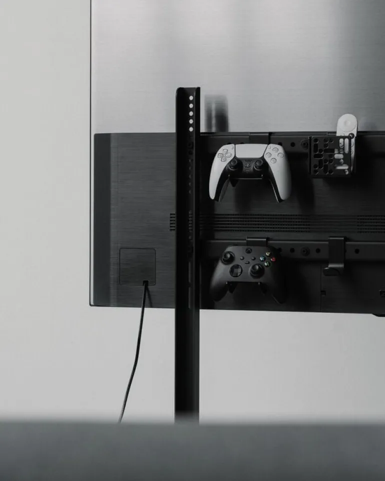 Pedestal’s Straight Rollin’ TV stand offers a modern storage solution for the living room’s centerpiece while seamlessly blending into the décor without stealing the spotlight. Made from sturdy powder-coated steel, the TV stand comes equipped with convenient wheels that make it effortless to move from room to room if needed. The sleek Straight Rollin’ TV stand is ideal not only for the home but also for offices and conference rooms.