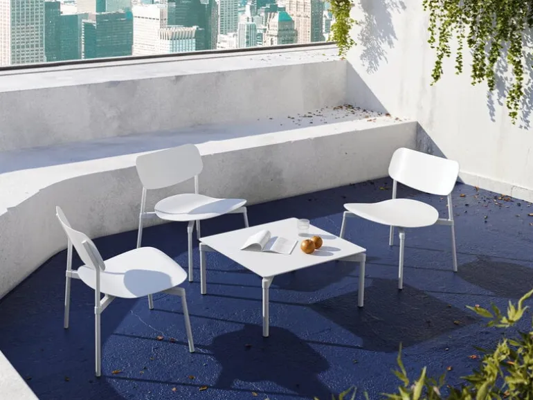 Petite Friture’s Fromme coffee table boasts simple, streamlined shapes and a thin, rectangular tabletop with integrated shock absorbers that give it a slightly flexible feel. Made of matte-coated aluminum, the Fromme table is designed for both outdoor and indoor use – it is equally ideal as a side table in the garden or as a coffee table indoors.